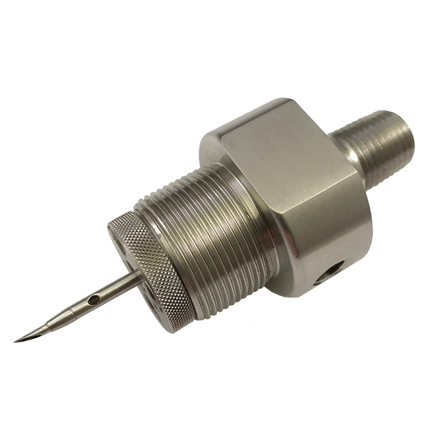 SENSOR CONCENTRIC Needle SystemThe CONCENTRIC Needle design combines the function of the 2-needle or dual system in one concentric combination of two different-sized needles, one within the other. Process travels through the inner needle into the bottle and the displaced air and vapors from the bottle are vented back through the annulus between the two needles and plumbed to a safe area. The process vent is available in three sizes: .065”/.109”, .083”/.148”, and .109”/.203”. When samples are collected from a chemical or refining process, capturing the VENT and moving it away from personnel is one of the most important safety functions of the system. Many of these chemicals are hazardous to operations personnel, which makes grab sampling a potentially hazardous task. Standard bottle systems from SENSOR utilize a process needle for filling the bottle and a separate needle for venting it. The needles, in combination with a bottle, cap, and membrane septum, provide for the “closed-loop” nature of the sample system. | ![]() |