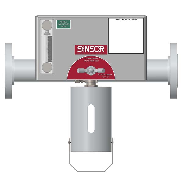 Inline Sampling SystemsThe SENSOR Inline Grab Sampling System (ISS) fits into a piping system without the need to utilize, or create, a pressure differential fast loop to take a sample. It can be designed to fit into virtually any diameter piping system and any flange configuration. The ISS uses a special long-body needle valve and can also be configured with a collection chamber. SENSOR welds a specially designed sample valve into a spool piece matching your piping specification. The valve body can be fully purged to ensure zero dead volume by residual elimination. This purge eliminates any potential plugging issues and ensures process media is not vapor locked in the dispense tube. Typical applications for the SENSOR ISS include hot oil, refinery “bottoms”, and residual oil. Our robust valve is fitted with graphoil packing for high-temperature applications. We heat trace any exposed areas to maintain adequate process temperature to allow for a free flowing sample. We enclose the valve and sample receptacle in a specially designed enclosure that can be fitted with an optional educator to exhaust harmful vapors to a safe location. | ![]() |
