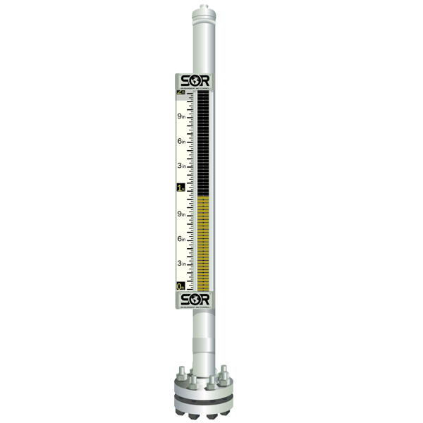 Magnetic Level IndicatorThe SOR® 1100 series magnetic level indicator leverages decades of experience building pressure vessels and pairs it with an industry leading indicator design to provide clear and reliable indication of any process liquid. The 1100 series gauge is a great alternative to traditional sight glasses since the vessel contents are totally contained within the float chamber making it ideal for high pressure systems. External point level switches or continuous level transmitters such as guided wave radar or a magnetostrictive level transmitter can easily be incorporated into the system without breaking the pressure boundary or disturbing any existing piping. The 1130 vista™ indicator (U.S. Patent #14/638,990) offers an industry leading 200º viewing angle as well as a 250 foot forward viewing distance. Applications include, but are not limited to: oil/water separators, flash drums, surge tanks, gas chillers, vacuum tower bottoms, alkylation units, propane vessels and storage tanks. | ![]() |